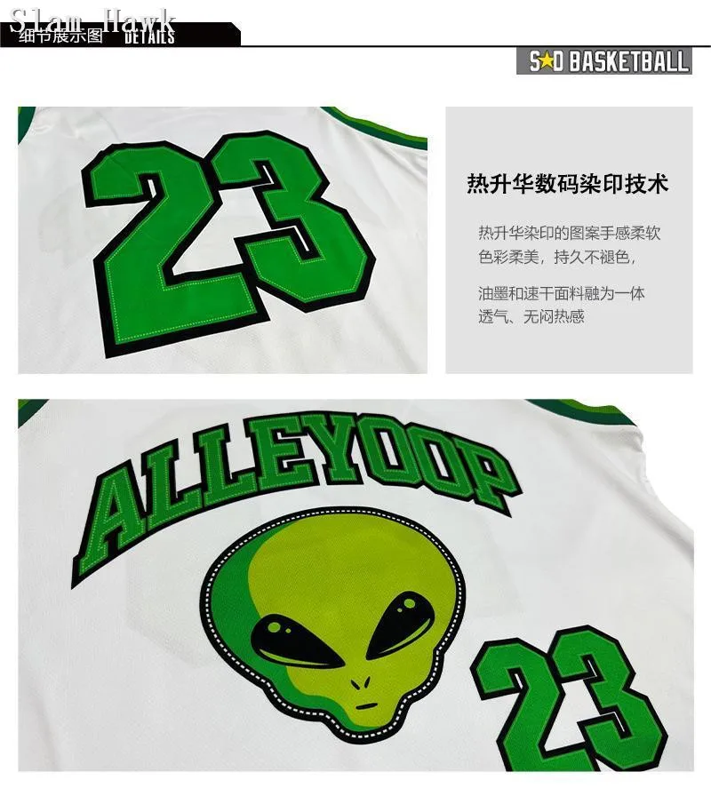Alleyoop Osso Collector Camisas e Calças Set, Basquete Jerseys, American Design Camisas, Street Ball, Marca, 23