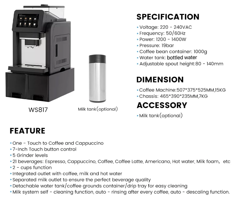 • Tipo de café: Máquina de café expresso,Americano,Latte,cappuccino
