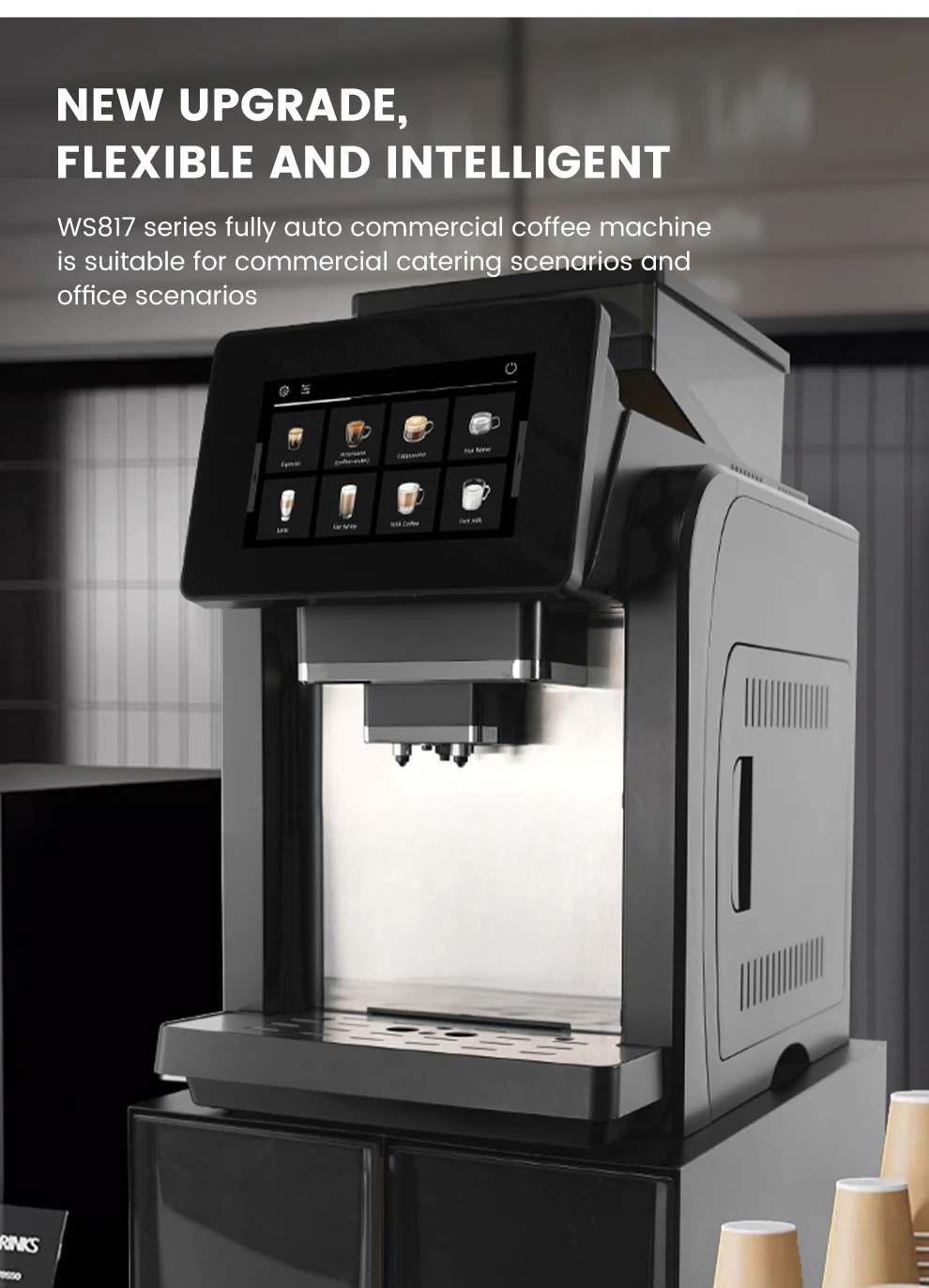 Mcilpoog WS817-Plus Máquina de café expresso automática colorida de tela grande de 7 “com batedor de leite, 21 sabores para casa e escritório
