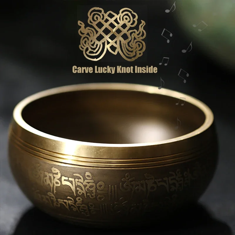 Nepal cantando tigela yoga meditação tibetano cantando tigela budismo som tigelas tibet terapia de música artesanal nó sorte dentro